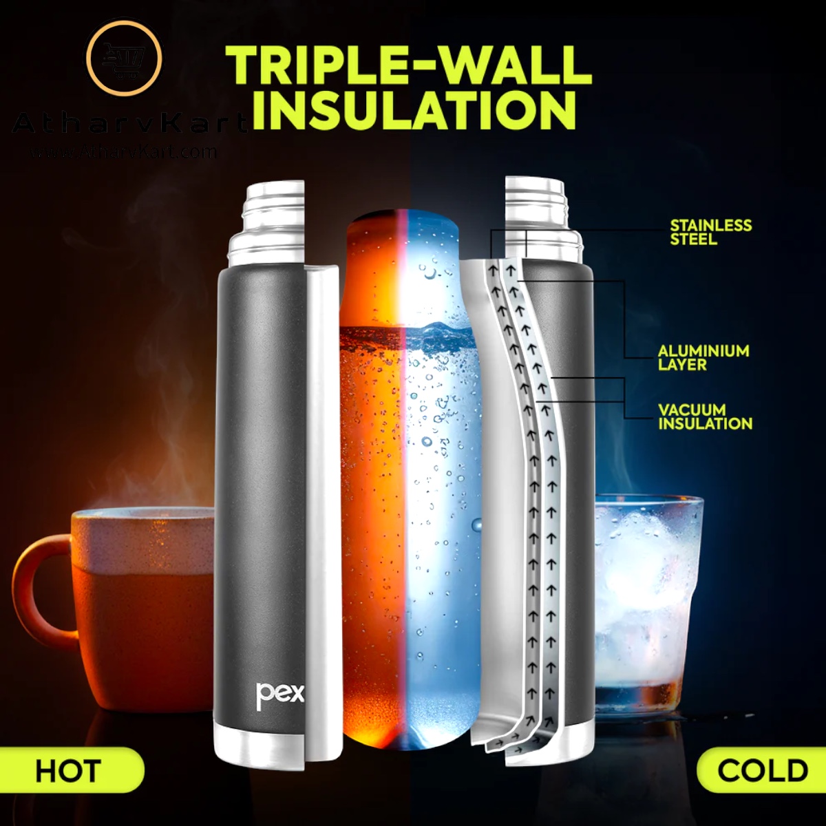 - Vacuum Insulated Flask: Advanced vacuum insulation design with Tri-Ply technology keeps beverages Hot and Cold for long hours – perfect for travel, office, or outdoor adventures.
